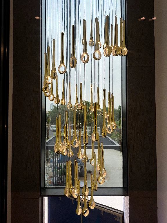 Step into our gallery and discover the artistry behind each installation. From grand chandeliers to bespoke lighting pieces, our projects reflect the harmony of light, space, and refined craftsmanship across the world.