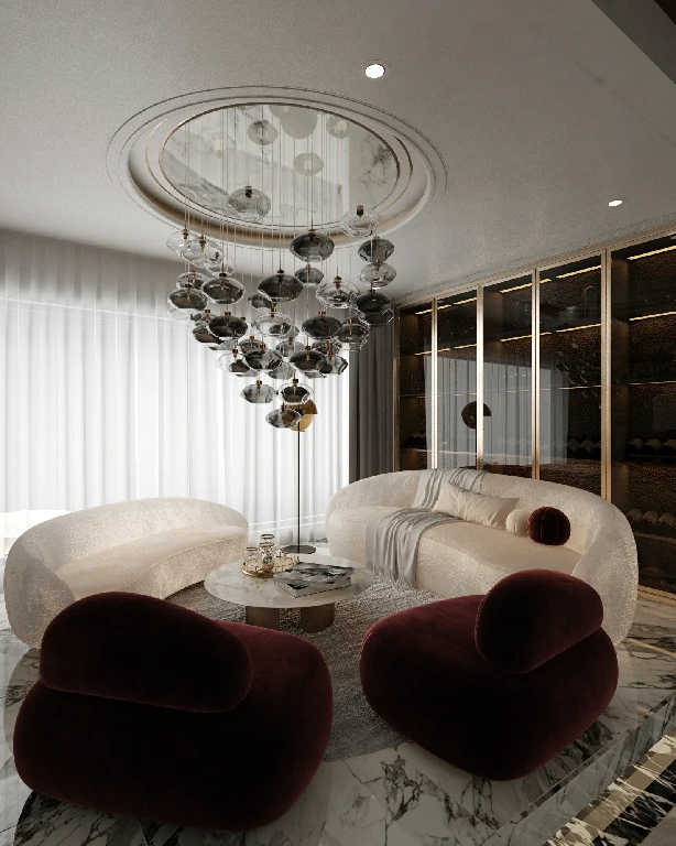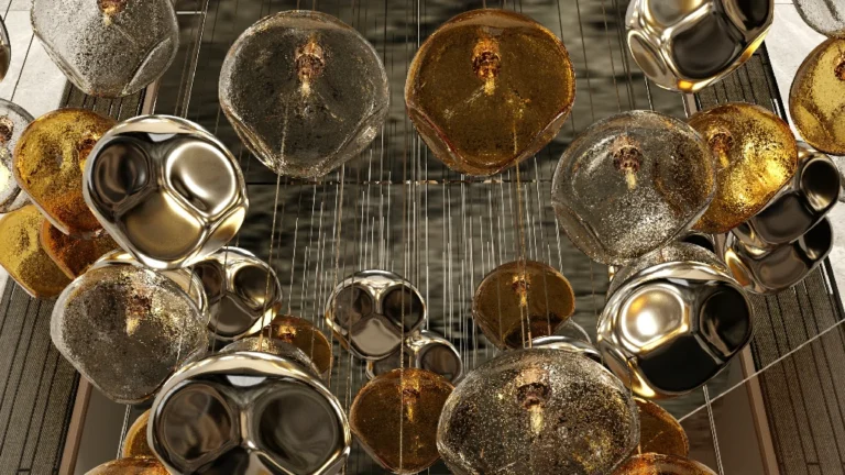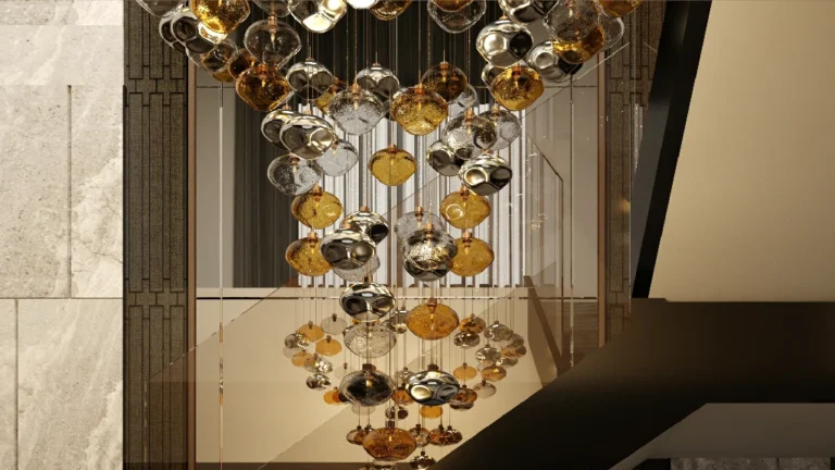 Baubles 160 features a dramatic arrangement of precision-cut crystal orbs delicately suspended across a linear frame. Designed to reflect and refract light with elegance, it brings a sense of rhythm and luxury to contemporary interiors. Ideal for dining areas, staircases, or commercial showpieces.