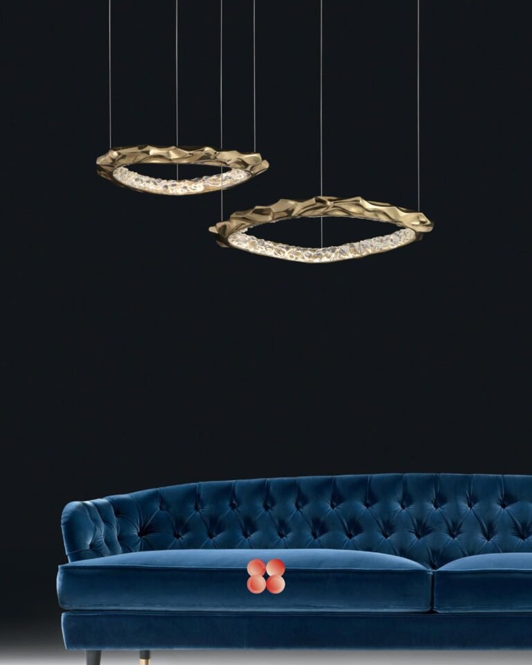 Its textured golden frames and sparkling crystal interiors evoke the elegance of fine jewelry suspended in space. More than illumination, Lysara Éclat is a statement of design — a sculptural masterpiece that elevates interiors with its radiant glow.