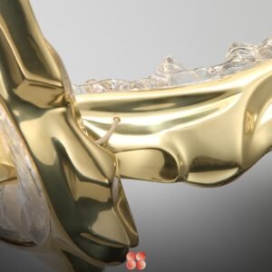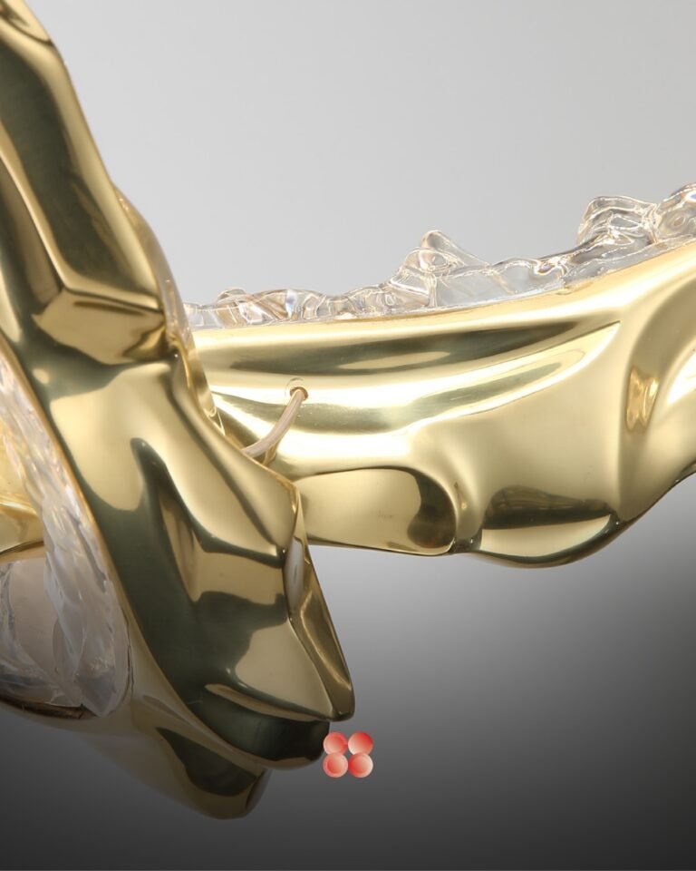The Lysara Serpente chandelier embodies movement, elegance, and radiant power. Its flowing golden loops, handcrafted from copper, twist and turn like a luminous serpent suspended in mid-air. Each curve is lined with faceted silicon crystal diffusers, transforming light into a shimmering play of brilliance.